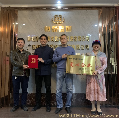 防城港市爱晚之家社会服务中心联合爱立方爱童敬老协会向防城港市恒泰集团赠“爱心企业”牌!