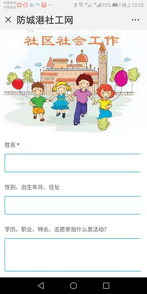 上图三个图为防城港社工网手机版”义工报名“网页部分