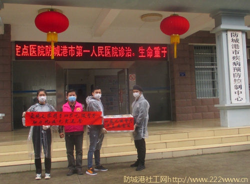 给防城港市疾控中心捐赠了医护一次性口罩共900个,意向一线疫情疾控工作人员代为发给需要疫病防护的却没有口罩的群众。