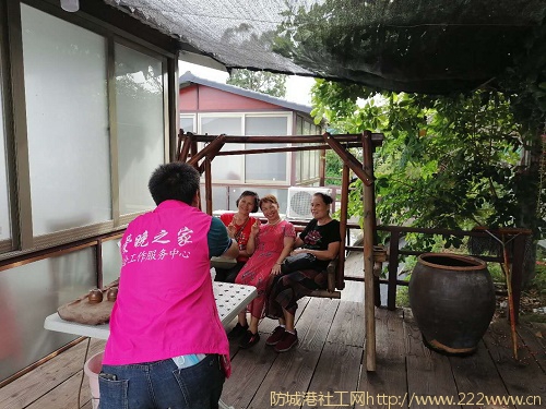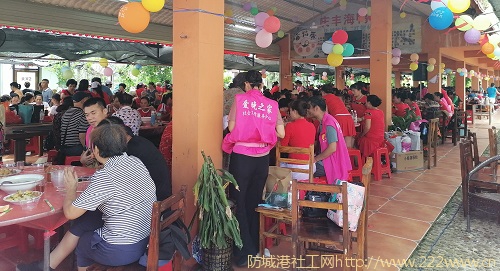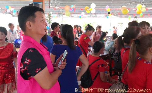 在大家沉醉在活动欢乐之余,防城港市爱晚之家社会服务中心志愿者们在默默地关爱着老龄朋友们。