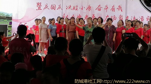 2020年9月26日上午9:00~下午16:00,值中秋、国庆双节之际,在广西防城港东兴市江平镇庆丰生态园内,防城港市港口区老体协、中共防城港市爱晚之家社会服务中心党支部、港口桃花湾社区老体协,为庆“双节”,丰富老龄人生活,促进我市精神文明建设,推进老龄事业发展,联合组织了近600名中老年人举办了一场别开生面的“迎金秋,贺国庆”文体交流活动。