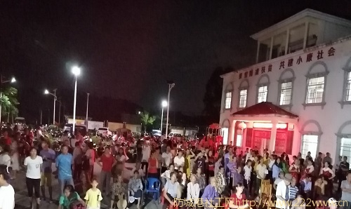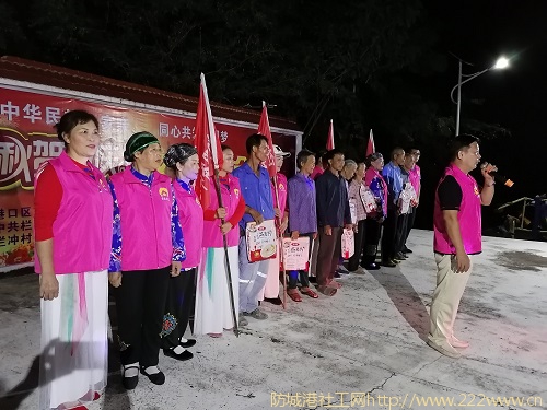 当晚,明月当空,夜色怡人。晚会由港口区文化广电体育和旅游局主办,中共栏冲村支部委员会、栏冲村委会、中共防城港市爱晚之家社会服务中心党支部联合承办。晚会中,栏冲村各文艺队和爱晚之家文艺部志愿者们轮番登台演出,节目丰富多彩,欢庆洋溢,村民们纷纷前来观看,热闹非凡。