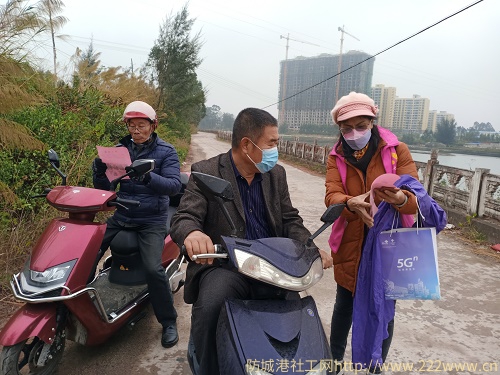 上图为志愿者骑上心爱的小电驴在准备出发
