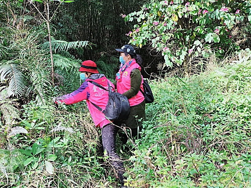 上图为志愿者在野外寻找线索