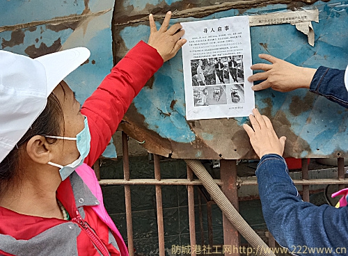 于2022年1月9日—12日,“工作组”针对失踪者亲属提供失踪人的信息及意愿并结合“工作组”资源,进行分小组、分任务有序地开展爱心助力寻人志愿搜寻工作。搜寻工作中,共出动了68人次,车辆共9辆,打印《寻人启事》单页500张,消耗防护口罩、医用消毒液、医用检查手套一批,提供服务时长共400多小时,平均每人每天行里程约10公里,亲属心理安抚4次,事务建议3个,疑似线索一个。搜寻区域有:防城区的城南、城北、城东城区,华石镇的枫木坪沿路至华石街道;港口区的城区、郊区、光坡镇、企沙镇等,搜寻区位有:公路、城市道路、厂场、社区、广场、停车场、车站、荒山野岭、湖泊海滩、深沟大坑、垃圾场等。搜寻情况如下: